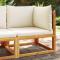 Canapé d'angle de jardin avec coussins bois massif d'acaciaCe canapé de jardin en bois avec coussins sera un excellent complément à votre jardin, terrasse ou patio pour discuter avec la famille et les amis ou simplement profiter du temps. Cadre robuste et stable : le bois d'acacia massif est connu pour sa solidité et sa durabilité. Ses couleurs variées et ses grains uniques lui confèrent un aspect attrayant. Sa stabilité et sa résistance aux intempéries en font un matériau idéal pour la fabrication de meubles d'intérieur et d'extérieur.Expérience d'assise confortable : ce mobilier d'extérieur, doté de coussins épais, offre une expérience d'assise confortable.Housse amovible et lavable : Ce coussin de siège est doté d'une housse amovible pour un lavage et un entretien faciles.Conception modulaire : ce meuble d'extérieur a une conception modulaire, ce qui le rend complètement flexible et facile à déplacer, afin que vous puissiez créer un agencement de meubles d'extérieur personnalisé. Bon à savoir :Pour que vos meubles d'extérieur restent beaux, nous vous recommandons de les protéger avec une housse imperméable. Maximum 110 kg par siège. Soyez conscient du risque de feux ouverts et d'autres sources de forte chaleur à proximité du produit.