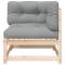 Canapé d'angle de jardin avec coussins bois de pin solideCe canapé de jardin en bois avec coussins sera un excellent complément à votre jardin, terrasse ou patio pour discuter avec la famille et les amis ou simplement profiter du temps. Bois de pin massif : le bois de pin massif est un matériau naturel magnifique. Le bois de pin a un grain droit et les noeuds donnent au matériau son aspect caractéristique et rustique. Fabriqué en bois de pin massif, ce fauteuil simple est durable et stable. Expérience d'assise confortable : le dossier et les coussins rembourrés rendent le canapé de jardin plus confortable pour s'asseoir. Conception à lattes : la conception à lattes du canapé d'extérieur empêche efficacement l'eau de s'accumuler, ce qui garantit que l'assise reste sèche et exempte de tout risque de pourriture. Conception modulaire : ce canapé de terrasse présente une conception modulaire, ce qui le rend complètement flexible et facile à déplacer pour s'adapter à n'importe quel environnement. Vous pouvez le combiner avec d'autres segments modulaires disponibles dans le menu déroulant pour créer vos propres configurations d'ensemble de salon de jardin personnelles ! Bon à savoir : Pour que vos meubles d'extérieur restent beaux, nous vous recommandons de les protéger avec une housse imperméable. Maximum 110 kg par siège. Soyez conscient du risque de feux ouverts et d'autres sources de forte chaleur à proximité du produit. ,