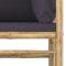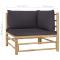 Canapé d'angle de jardin avec coussins gris foncé BambouCe canapé d'angle de jardin sera un excellent supplément à votre jardin, terrasse ou patio pour discuter en famille et entre amis ou tout simplement profiter du beau temps. Ce canapé d'extérieur est fabriqué en bambou, ce qui le rend robuste et facile à nettoyer. Les coussins de siège et de dossier bien rembourrés ajoutent du confort supplémentaire à votre temps de détente. Avec une construction légère, le canapé de jardin est facile à déplacer. Vous pouvez le placer dans n'importe quelle disposition selon vos préférences, grâce à sa conception modulaire. Remarque : Afin de prolonger la durée de vie de vos meubles d'extérieur, nous vous recommandons de les nettoyer régulièrement et de ne pas les laisser à l'extérieur sans protection inutilement. Nettoyage : Utiliser une solution savonneuse douce Stockage : Si possible, stockez dans un endroit frais et sec à l'intérieur. Si le produit est stocké à l'extérieur, protégez-le avec une housse imperméable. Essuyez et séchez l'excès d'eau ou de neige des surfaces planes après la pluie ou une chute de neige. Permettez une circulation d'air suffisante afin d'éviter les dommages liés à l'humidité. ,