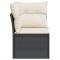 Canapé d'angle de jardin avec coussins noir résine tresséeDétendez-vous et profitez de l'extérieur dans ce confortable canapé de jardin ! Rotin PE : la résine tressée, également connue sous le nom de poly rotin, est un matériau synthétique solide et nécessitant peu d'entretien qui ressemble au rotin naturel. Il est léger, facile à nettoyer et couramment utilisé pour les meubles d'extérieur en raison de sa durabilité et de ses propriétés de résistance aux intempéries.Expérience d'assise confortable : ce mobilier d'extérieur, doté de coussins épais, offre une expérience d'assise confortable.Housse amovible et lavable : le coussin de siège est doté d'une housse amovible pour un lavage et un entretien faciles.Cadre robuste et stable : le cadre en acier enduit de poudre assure la solidité et la stabilité du meuble de jardin pour une utilisation quotidienne à l'extérieur.Conception modulaire : ce meuble d'extérieur a une conception modulaire, ce qui le rend complètement flexible et facile à déplacer, afin que vous puissiez créer un agencement de meubles d'extérieur personnalisé. Bon à savoir :Pour que vos meubles d'extérieur restent beaux, nous vous recommandons de les protéger avec une housse imperméable.