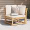Canapé d'angle de jardin coussins 73x73x65cm bois massif acaciaCe canapé de jardin en bois avec coussins sera un excellent complément à votre jardin, terrasse ou patio pour discuter avec la famille et les amis ou simplement profiter du temps. Bois d'acacia massif : le bois d'acacia massif est un matériau naturel magnifique. Le bois d'acacia un bois dur tropical, qui est dense, robuste et durable. Expérience d'assise confortable : le dossier et les coussins rembourrés rendent le canapé de jardin plus confortable pour s'asseoir. Conception à lattes : la conception à lattes du canapé d'extérieur empêche efficacement l'eau de s'accumuler, ce qui garantit que l'assise reste sèche et exempte de tout risque de pourriture. Conception modulaire : ce canapé simple présente une conception modulaire, ce qui le rend complètement flexible et facile à déplacer pour s'adapter à n'importe quel environnement. Vous pouvez le combiner avec d'autres segments modulaires disponibles dans le menu déroulant pour créer vos propres configurations d'ensemble de salon de jardin personnelles ! Bon à savoir : Pour que vos meubles d'extérieur restent beaux, nous vous recommandons de les protéger avec une housse imperméable. Maximum 110 kg par siège. Soyez conscient du risque de feux ouverts et d'autres sources de forte chaleur à proximité du produit. ,