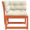 Canapé d'angle de jardin coussins cire marron bois pin massifCe canapé de jardin en bois avec coussins sera un excellent complément à votre jardin, terrasse ou patio pour discuter avec la famille et les amis ou simplement profiter du temps. Bois de pin massif : le bois de pin massif est un matériau naturel magnifique. Le bois de pin a un grain droit et les noeuds donnent au matériau son aspect caractéristique et rustique. Fabriqué en bois de pin massif, ce canapé d'angle est durable et stable.Expérience d'assise confortable : le dossier et les coussins rendent le canapé de jardin plus confortable pour s'asseoir.Conception à lattes : la conception à lattes du canapé d'extérieur empêche efficacement l'eau de s'accumuler, ce qui garantit que l'assise reste sèche et exempte de tout risque de pourriture.Conception modulaire : ce canapé simple présente une conception modulaire, ce qui le rend complètement flexible et facile à déplacer pour s'adapter à n'importe quel environnement. Vous pouvez le combiner avec d'autres segments modulaires disponibles dans le menu déroulant pour créer vos propres configurations d'ensemble de salon de jardin personnelles ! Bon à savoir :Pour que vos meubles d'extérieur restent beaux, nous vous recommandons de les protéger avec une housse imperméable. Maximum 110 kg par siège.