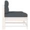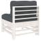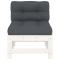 Canapé central avec coussins blanc bois de pin massifCe canapé central en bois, qui se démarque par son design à lattes et ses coussins moelleux, sera un excellent supplément à votre jardin, patio ou terrasse pour profiter d'un moment agréable avec votre famille ou vos amis. Bois de pin massif : le bois de pin massif est un matériau naturel magnifique. Le bois de pin a un grain droit et les noeuds donnent au matériau son aspect caractéristique et rustique. Cadre robuste et stable : le cadre en bois rend le canapé de jardin robuste et stable pour une utilisation quotidienne à l'extérieur. Expérience d'assise confortable : le dossier ajoute un confort d'assise supplémentaire au canapé d'extérieur. De plus, le coussin bien rembourré offre du confort pendant votre temps d'assise. Design modulaire : le canapé sectionnel est flexible et facile à déplacer. Vous pouvez le combiner avec d'autres segments modulaires sur notre site Web pour créer votre propre ensemble de salon de jardin ! Bon à savoir : Pour que vos meubles d'extérieur restent beaux, nous vous recommandons de les protéger avec une housse imperméable. Maximum 110 kg par siège. ,
