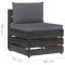 Canapé central sectionnel avec coussins Bois imprégné de grisCe canapé de milieu en bois est un choix idéal pour vous détendre, profiter du beau temps, faire une sieste ou discuter en famille ou entre amis. Avec son design intemporel de palette, ce canapé en bois ajoute une touche de charme rustique à votre terrasse, jardin ou salon. Le siège central est fabriqué en bois de pin imprégné, ce qui le rend durable et résistant aux intempéries. Ce fauteuil central a une construction solide et nécessite peu d'entretien. Ce canapé palette est spécialement conçu pour faire partie d'un ensemble de salon et peut également être utilisé comme un canapé simple. Vous pouvez le combiner avec d'autres segments modulaires comme table basse, repose-pied et canapé d'angle pour créer vos propres configurations de salon de jardin ! Remarque : afin de prolonger la durée de vie des meubles d'extérieur, nous vous recommandons de les protéger avec une housse imperméable. ,