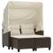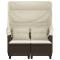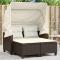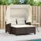 Canapé de jardin 2 places avec auvent et tabourets marron rotinDétendez-vous et profitez de l'extérieur sur ce canapé de jardin confortable avec auvent et tabourets ! Matériau durable : la résine tressée, également connue sous le nom de poly rotin, est un matériau synthétique solide et nécessitant peu d'entretien qui ressemble au rotin naturel. Il est léger, facile à nettoyer et couramment utilisé pour les meubles d'extérieur en raison de sa durabilité et de ses propriétés de résistance aux intempéries.Auvent rétractable : grâce à l'auvent rétractable, vous pouvez créer un environnement extérieur frais et agréable tout au long de la journée.Pouf polyvalent : le tabouret est polyvalent, servant de repose-pieds confortable lorsque vous vous prélassez sur le canapé ou de siège supplémentaire dans votre jardin.Expérience d'assise confortable : ce canapé d'extérieur, doté de coussins épais, offre une expérience d'assise confortable.Housse amovible et lavable : le coussin de siège est doté d'une housse amovible pour un lavage et un entretien faciles. Bon à savoir :Pour que vos meubles d'extérieur restent beaux, nous vous recommandons de les protéger avec une housse imperméable. Maximum 110 kg par siège. Soyez conscient du risque de feux ouverts et d'autres sources de forte chaleur à proximité du produit.