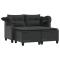 Canapé de jardin 2 places avec auvent et tabourets noir rotinDétendez-vous et profitez de l'extérieur sur ce canapé de jardin confortable avec auvent et tabourets ! Matériau durable : la résine tressée, également connue sous le nom de poly rotin, est un matériau synthétique solide et nécessitant peu d'entretien qui ressemble au rotin naturel. Il est léger, facile à nettoyer et couramment utilisé pour les meubles d'extérieur en raison de sa durabilité et de ses propriétés de résistance aux intempéries.Auvent rétractable : grâce à l'auvent rétractable, vous pouvez créer un environnement extérieur frais et agréable tout au long de la journée.Pouf polyvalent : le tabouret est polyvalent, servant de repose-pieds confortable lorsque vous vous prélassez sur le canapé ou de siège supplémentaire dans votre jardin.Expérience d'assise confortable : ce canapé d'extérieur, doté de coussins épais, offre une expérience d'assise confortable.Housse amovible et lavable : le coussin de siège est doté d'une housse amovible pour un lavage et un entretien faciles. Bon à savoir :Pour que vos meubles d'extérieur restent beaux, nous vous recommandons de les protéger avec une housse imperméable. Maximum 110 kg par siège. Soyez conscient du risque de feux ouverts et d'autres sources de forte chaleur à proximité du produit.