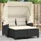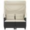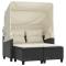 Canapé de jardin 2 places avec auvent et tabourets noir rotinDétendez-vous et profitez de l'extérieur sur ce canapé de jardin confortable avec auvent et tabourets ! Matériau durable : la résine tressée, également connue sous le nom de poly rotin, est un matériau synthétique solide et nécessitant peu d'entretien qui ressemble au rotin naturel. Il est léger, facile à nettoyer et couramment utilisé pour les meubles d'extérieur en raison de sa durabilité et de ses propriétés de résistance aux intempéries.Auvent rétractable : grâce à l'auvent rétractable, vous pouvez créer un environnement extérieur frais et agréable tout au long de la journée.Pouf polyvalent : le tabouret est polyvalent, servant de repose-pieds confortable lorsque vous vous prélassez sur le canapé ou de siège supplémentaire dans votre jardin.Expérience d'assise confortable : ce canapé d'extérieur, doté de coussins épais, offre une expérience d'assise confortable.Housse amovible et lavable : le coussin de siège est doté d'une housse amovible pour un lavage et un entretien faciles. Bon à savoir :Pour que vos meubles d'extérieur restent beaux, nous vous recommandons de les protéger avec une housse imperméable. Maximum 110 kg par siège. Soyez conscient du risque de feux ouverts et d'autres sources de forte chaleur à proximité du produit.