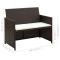 Canapé de jardin à 2 places avec coussins Marron Résine tresséeCe canapé à 2 places en résine tressée offrira un coin salon élégant pour votre jardin ou terrasse. Grâce à la résine tressée résistante à l'eau et imperméable, notre canapé de jardin est facile à nettoyer, résistant à l'usure et convient à un usage quotidien. Le canapé d'extérieur est doté d'un cadre en acier robuste enduit de poudre extrêmement durable. Il est également léger, ce qui facilite son transport. Les coussins de siège épais et amovibles sont inclus pour fournir le plus grand confort d'assise. Notre canapé en résine tressée peut être facilement déplacé pour s'adapter à tous les décors. La livraison comprend 1 canapé à 2 places et 2 coussins de siège. Remarque : Nous recommandons de couvrir le canapé pendant la pluie, la neige et le gel.