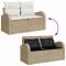 Canapé de jardin 2 places avec rangement et coussins en poly rattan beigeCe canapé de jardin allie un style moderne à un confort pratique, parfait pour des endroits comme les balcons ou les patios. Avec son cadre en poly rattan beige et ses coussins crème, c'est idéal pour se détendre ou passer du temps entre amis, t'invitant à profiter de l'air frais. Stylé et fonctionnel : Le cadre chic beige avec des coussins crème donne un look élégant qui rehausse n'importe quel espace extérieur. Ce design astucieux ajoute non seulement du style mais garde aussi ton coin détente chaleureux. Coussins confortables : Remplis de fibre de polyester légère, les coussins offrent une assise confortable, parfaite pour se prélasser longtemps. Les zips facilitent leur entretien, permettant de garder ton canapé de jardin tout frais. Matériaux résistants aux intempéries : Conçu en poly rattan qui résiste aux UV, ce canapé supporte bien les éléments, t'assurant de pouvoir en profiter pendant des années. Gain de place : Conçu pour trois adultes tout en étant bien pour deux, parfait pour des discussions et moments partagés - idéal pour les espaces extérieurs réduits. Recommandé pour un usage extérieur : Surtout adapté pour les balcons, patios ou jardins, offrant un coin stylé pour se relaxer dehors.