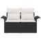 Canapé de jardin 2 places avec rangement et coussins en poly rotin noirCe canapé d'extérieur 2 places est là pour le confort et le style, parfait pour des espaces comme les jardins, balcons, et salles de soleil. Avec son look sympa et solide, il va avec tout décor rustique tout en apportant du confort à votre extérieur. ?Design Modulaire? Le design modulaire vous permet de changer la disposition selon votre espace extérieur. Que ce soit pour un moment relax ou une soirée tranquille, configurez le canapé comme vous voulez ! ?Résistant aux Intempéries? Fait en matériaux résistants aux UV, ce canapé est conçu pour durer même au soleil. Vous pouvez profiter de votre espace extérieur sans craindre la décoloration. ?Rangement Abondant? Avec ses compartiments secrets intégrés, ce canapé offre un rangement astucieux pour les coussins et autres essentiels, gardant votre espace propre et bien rangé. ?Coussins Confortables? Les coussins doux inclus rendent la assise à l'extérieur super agréable, avec des housses amovibles et lavables pour un entretien facile. Vous allez adorer vous détendre dehors avec style. ?Cadre Robuste? Construit sur un cadre en acier solide, ce canapé offre stabilité et force. Le mélange de rattan PE synthétique avec un cadre fiable en fait une option parfaite pour votre style de vie extérieur.
