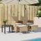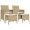Canapé de jardin 2 places avec table et tabourets beige rotinDétendez-vous et profitez de l'extérieur dans ce confortable canapé de jardin ! Matériau durable : la résine tressée, également connue sous le nom de poly rotin, est un matériau synthétique solide et nécessitant peu d'entretien qui ressemble au rotin naturel. Il est léger, facile à nettoyer et couramment utilisé pour les meubles d'extérieur en raison de sa durabilité et de ses propriétés de résistance aux intempéries.Pouf polyvalent : le tabouret est polyvalent, servant de repose-pieds confortable lorsque vous vous prélassez sur le canapé ou de siège supplémentaire dans votre jardin.Expérience d'assise confortable : ce mobilier d'extérieur, doté de coussins épais, offre une expérience d'assise confortable.Housse amovible et lavable : ces coussins de siège sont dotés de housses amovibles pour un lavage et un entretien faciles.Cadre robuste et stable : le cadre en acier enduit de poudre assure la solidité et la stabilité du meuble de jardin pour une utilisation quotidienne à l'extérieur. Bon à savoir :Pour que vos meubles d'extérieur restent beaux, nous vous recommandons de les protéger avec une housse imperméable. Maximum 110 kg par siège. Soyez conscient du risque de feux ouverts et d'autres sources de forte chaleur à proximité du produit.