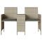 Canapé de jardin 2 places avec table tabourets gris clair rotinDétendez-vous et profitez de l'extérieur dans ce confortable canapé de jardin ! Matériau durable : la résine tressée, également connue sous le nom de poly rotin, est un matériau synthétique solide et nécessitant peu d'entretien qui ressemble au rotin naturel. Il est léger, facile à nettoyer et couramment utilisé pour les meubles d'extérieur en raison de sa durabilité et de ses propriétés de résistance aux intempéries.Pouf polyvalent : le tabouret est polyvalent, servant de repose-pieds confortable lorsque vous vous prélassez sur le canapé ou de siège supplémentaire dans votre jardin.Expérience d'assise confortable : ce mobilier d'extérieur, doté de coussins épais, offre une expérience d'assise confortable.Housse amovible et lavable : ces coussins de siège sont dotés de housses amovibles pour un lavage et un entretien faciles.Cadre robuste et stable : le cadre en acier enduit de poudre assure la solidité et la stabilité du meuble de jardin pour une utilisation quotidienne à l'extérieur. Bon à savoir :Pour que vos meubles d'extérieur restent beaux, nous vous recommandons de les protéger avec une housse imperméable. Maximum 110 kg par siège. Soyez conscient du risque de feux ouverts et d'autres sources de forte chaleur à proximité du produit.