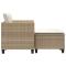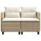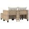 Canapé de jardin 2 places avec tabourets beige résine tresséeDétendez-vous et profitez de l'extérieur sur ce canapé de jardin confortable avec tabourets ! Matériau durable : la résine tressée, également connue sous le nom de poly rotin, est un matériau synthétique solide et nécessitant peu d'entretien qui ressemble au rotin naturel. Il est léger, facile à nettoyer et couramment utilisé pour les meubles d'extérieur en raison de sa durabilité et de ses propriétés de résistance aux intempéries.Pouf polyvalent : le tabouret est polyvalent, servant de repose-pieds confortable lorsque vous vous prélassez sur le canapé ou de siège supplémentaire dans votre jardin.Expérience d'assise confortable : ce canapé d'extérieur, doté de coussins épais, offre une expérience d'assise confortable.Housse amovible et lavable : le coussin de siège est doté d'une housse amovible pour un lavage et un entretien faciles. Bon à savoir :Pour que vos meubles d'extérieur restent beaux, nous vous recommandons de les protéger avec une housse imperméable. Maximum 110 kg par siège. Soyez conscient du risque de feux ouverts et d'autres sources de forte chaleur à proximité du produit.