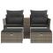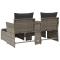 Canapé de jardin 2 places avec tabourets gris résine tresséeCe canapé de jardin avec tabourets est le complément parfait de votre arrière-cour, terrasse ou patio, offrant un espace confortable et accueillant pour discuter avec la famille et les amis ou simplement se détendre et profiter de l'extérieur. Matériau durable : la résine tressée, également connue sous le nom de poly rotin, est un matériau synthétique solide et nécessitant peu d'entretien qui ressemble au rotin naturel. Il est léger, facile à nettoyer et couramment utilisé pour les meubles d'extérieur en raison de sa durabilité et de ses propriétés de résistance aux intempéries.Table centrale pratique : ce mobilier d'extérieur est doté d'une table centrale intégrée, qui permet de ranger vos objets essentiels à portée de main.Housse amovible et lavable : ces coussins de siège sont dotés de housses amovibles pour un lavage et un entretien faciles.Rangement compact : ces repose-pieds peuvent être soigneusement rangés sous les sièges, ce qui permet d'économiser de l'espace. Bon à savoir :Pour que vos meubles d'extérieur restent beaux, nous vous recommandons de les protéger avec une housse imperméable. Maximum 110 kg par siège. Soyez conscient du risque de feux ouverts et d'autres sources de forte chaleur à proximité du produit.