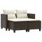 Canapé de jardin 2 places avec tabourets marron résine tresséeDétendez-vous et profitez de l'extérieur sur ce canapé de jardin confortable avec tabourets ! Matériau durable : la résine tressée, également connue sous le nom de poly rotin, est un matériau synthétique solide et nécessitant peu d'entretien qui ressemble au rotin naturel. Il est léger, facile à nettoyer et couramment utilisé pour les meubles d'extérieur en raison de sa durabilité et de ses propriétés de résistance aux intempéries.Pouf polyvalent : le tabouret est polyvalent, servant de repose-pieds confortable lorsque vous vous prélassez sur le canapé ou de siège supplémentaire dans votre jardin.Expérience d'assise confortable : ce canapé d'extérieur, doté de coussins épais, offre une expérience d'assise confortable.Housse amovible et lavable : le coussin de siège est doté d'une housse amovible pour un lavage et un entretien faciles. Bon à savoir :Pour que vos meubles d'extérieur restent beaux, nous vous recommandons de les protéger avec une housse imperméable. Maximum 110 kg par siège. Soyez conscient du risque de feux ouverts et d'autres sources de forte chaleur à proximité du produit.