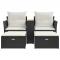 Canapé de jardin 2 places avec tabourets noir résine tresséeCe canapé de jardin avec tabourets est le complément parfait de votre arrière-cour, terrasse ou patio, offrant un espace confortable et accueillant pour discuter avec la famille et les amis ou simplement se détendre et profiter de l'extérieur. Matériau durable : la résine tressée, également connue sous le nom de poly rotin, est un matériau synthétique solide et nécessitant peu d'entretien qui ressemble au rotin naturel. Il est léger, facile à nettoyer et couramment utilisé pour les meubles d'extérieur en raison de sa durabilité et de ses propriétés de résistance aux intempéries.Table centrale pratique : ce mobilier d'extérieur est doté d'une table centrale intégrée, qui permet de ranger vos objets essentiels à portée de main.Housse amovible et lavable : ces coussins de siège sont dotés de housses amovibles pour un lavage et un entretien faciles.Rangement compact : ces repose-pieds peuvent être soigneusement rangés sous les sièges, ce qui permet d'économiser de l'espace. Bon à savoir :Pour que vos meubles d'extérieur restent beaux, nous vous recommandons de les protéger avec une housse imperméable. Maximum 110 kg par siège. Soyez conscient du risque de feux ouverts et d'autres sources de forte chaleur à proximité du produit.