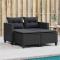 Canapé de jardin 2 places avec tabourets noir résine tresséeDétendez-vous et profitez de l'extérieur sur ce canapé de jardin confortable avec tabourets ! Matériau durable : la résine tressée, également connue sous le nom de poly rotin, est un matériau synthétique solide et nécessitant peu d'entretien qui ressemble au rotin naturel. Il est léger, facile à nettoyer et couramment utilisé pour les meubles d'extérieur en raison de sa durabilité et de ses propriétés de résistance aux intempéries.Pouf polyvalent : le tabouret est polyvalent, servant de repose-pieds confortable lorsque vous vous prélassez sur le canapé ou de siège supplémentaire dans votre jardin.Expérience d'assise confortable : ce canapé d'extérieur, doté de coussins épais, offre une expérience d'assise confortable.Housse amovible et lavable : le coussin de siège est doté d'une housse amovible pour un lavage et un entretien faciles. Bon à savoir :Pour que vos meubles d'extérieur restent beaux, nous vous recommandons de les protéger avec une housse imperméable. Maximum 110 kg par siège. Soyez conscient du risque de feux ouverts et d'autres sources de forte chaleur à proximité du produit.