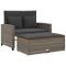 Canapé de jardin 2 places coussins gris résine tressée&acaciaDétendez-vous et profitez de l'extérieur dans ce confortable canapé de jardin 2 places ! Matériau durable : la résine tressée, également connue sous le nom de poly rotin, est un matériau synthétique solide et nécessitant peu d'entretien qui ressemble au rotin naturel. Il est léger, facile à nettoyer et couramment utilisé pour les meubles d'extérieur en raison de sa durabilité et de ses propriétés de résistance aux intempéries. Fonctionnalité polyvalente : ce meuble d'extérieur peut être utilisé comme banc à 2 places ou comme canapé-lit. Vous pouvez facilement le transformer en lit en inclinant le dossier et en retirant le tabouret qui se trouve sous la banquette. Les panneaux de support situés derrière les dossiers rendent le lit plus stable. Repose-pieds polyvalent : le repose-pieds d'extérieur peut être utilisé pour vous asseoir ou vous détendre, et peut également être utilisé comme table basse pour contenir vos boissons, votre nourriture et d'autres décorations. De plus, le repose-pieds est doté d'une fonction de rangement pour les coussins et les oreillers et peut être soigneusement rangé sous le canapé pour économiser de l'espace. Expérience d'assise confortable : ce mobilier d'extérieur, doté de coussins épais, offre une expérience d'assise confortable. Housse amovible et lavable : ces coussins de siège sont dotés de housses amovibles pour un lavage et un entretien faciles. Bon à savoir :Pour que vos meubles d'extérieur restent beaux, nous vous recommandons de les protéger avec une housse imperméable. Maximum 110 kg par siège. Soyez conscient du risque de feux ouverts et d'autres sources de forte chaleur à proximité du produit.