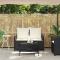 Canapé de jardin 2 places coussins et table noir résine tresséeDétendez-vous et profitez de l'extérieur dans ce confortable canapé de jardin 2 places ! Matériau durable : la résine tressée, également connue sous le nom de poly rotin, est un matériau synthétique solide et nécessitant peu d'entretien qui ressemble au rotin naturel. Elle est légère, facile à nettoyer et couramment utilisée pour les meubles d'extérieur en raison de sa durabilité et de ses propriétés de résistance aux intempéries.Dessus en verre : le dessus de la table d'extérieur est fabriqué en verre trempé solide et durable, ce qui le rend facile à nettoyer avec un chiffon humide et ajoute une touche d'élégance à votre espace extérieur.Expérience d'assise confortable : ce mobilier d'extérieur, doté de coussins épais, offre une expérience d'assise confortable.Housse amovible et lavable : ces coussins de siège et oreillers sont dotés de housses amovibles pour un lavage et un entretien faciles.Cadre robuste et stable : le cadre en acier enduit de poudre assure la solidité et la stabilité du meuble de jardin pour une utilisation quotidienne à l'extérieur. Bon à savoir :Pour que vos meubles d'extérieur restent beaux, nous vous recommandons de les protéger avec une housse imperméable.