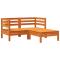 Canapé de jardin 2 places repose-pied cire marron bois massifCe canapé de jardin en bois 2 places avec repose-pieds sera un excellent supplément à votre jardin, terrasse ou patio pour discuter en famille et entre amis ou tout simplement profiter du beau temps. Bois de pin massif : le bois de pin massif est un matériau naturel magnifique. Le bois de pin a un grain droit et les noeuds donnent au matériau son aspect caractéristique et rustique. Fabriqué en bois de pin massif, le canapé d'extérieur est durable et stable. Expérience d'assise confortable : le dossier ajoute un confort d'assise supplémentaire pour les sièges de jardin. Utilisation polyvalente : ce repose-pieds d'extérieur peut non seulement être utilisé pour vous asseoir ou vous détendre, mais il peut également être utilisé comme table basse pour contenir vos boissons, votre nourriture et d'autres décorations. Conception à lattes : la conception à lattes du canapé palette empêche efficacement l'eau de s'accumuler, ce qui garantit que l'assise reste sèche et exempte de tout risque de pourriture. Conception modulaire : le canapé de jardin en bois présente une conception modulaire, ce qui le rend complètement flexible et facile à déplacer pour s'adapter à n'importe quel environnement. Vous pouvez le combiner avec d'autres segments modulaires disponibles dans le menu déroulant pour créer vos propres configurations d'ensemble de salon de jardin personnelles ! Bon à savoir : Pour que vos meubles d'extérieur restent beaux, nous vous recommandons de les protéger avec une housse imperméable. Maximum 110 kg par siège. ,