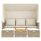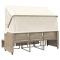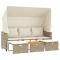 Canapé de jardin 3 places avec auvent et tabourets beige rotinCe canapé de jardin avec auvent et tabourets est le complément parfait de votre arrière-cour, terrasse ou patio, offrant un espace confortable et accueillant pour discuter avec la famille et les amis ou simplement vous détendre et profiter de l'extérieur. Matériau durable : la résine tressée, également connue sous le nom de poly rotin, est un matériau synthétique solide et nécessitant peu d'entretien qui ressemble au rotin naturel. Il est léger, facile à nettoyer et couramment utilisé pour les meubles d'extérieur en raison de sa durabilité et de ses propriétés de résistance aux intempéries.Auvent rétractable : grâce à l'auvent rétractable, vous pouvez créer un environnement extérieur frais et agréable tout au long de la journée.Dessus stable et facile à nettoyer : cette table de jardin a un dessus en bois d'acacia robuste, durable et facile à nettoyer avec un chiffon humide.Housse amovible et lavable : ces coussins de siège sont dotés de housses amovibles pour un lavage et un entretien faciles.Rangement compact : ces repose-pieds et la table peuvent être soigneusement rangés sous le canapé de jardin, ce qui permet d'économiser de l'espace. Bon à savoir :Pour que vos meubles d'extérieur restent beaux, nous vous recommandons de les protéger avec une housse imperméable.