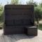Canapé de jardin 3 places avec toit et repose-pieds NoirCe confortable canapé de jardin 3 places avec toit et repose-pieds est une combinaison parfaite de style et de fonctionnalité. Matériau durable : la résine tressée, également connue sous le nom de rotin poly, résiste aux intempéries et est facile à nettoyer. Elle reste belle à l'extérieur pendant une longue période. Elle est plus économique que d'autres matériaux, tout en offrant une excellente qualité, une commodité et un aspect esthétique.Toit pliable : vous pouvez facilement régler le toit en fonction de vos besoins. Ouvrez le toit pour profiter de la lumière du soleil et fermez-le pour vous détendre à l'ombre. Il bloque efficacement les rayons UV nocifs et protège votre peau délicate des coups de soleil.Cadre stable : le cadre en acier enduit de poudre assure la robustesse et la stabilité.Repose-pieds pratique : le tabouret est adapté pour reposer vos pieds lorsque vous vous allongez sur le canapé ou vous offrir un siège supplémentaire.Expérience de siège confortable : le canapé de jardin est très confortable avec le coussin de siège et de dossier bien rembourré. Bon à savoir :Pour faciliter au maximum le montage, chaque produit est livré avec des instructions. Remarque :Pour que vos meubles d'extérieur restent beaux, nous vous recommandons de les protéger avec une housse imperméable.