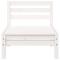 Canapé de jardin 3 places blanc bois de pin massifCe canapé de jardin en bois à 3 places sera un excellent supplément à votre jardin, terrasse ou patio pour discuter en famille et entre amis ou tout simplement profiter du beau temps. Bois de pin massif : le bois de pin massif est un matériau naturel magnifique. Le bois de pin a un grain droit et les noeuds donnent au matériau son aspect caractéristique et rustique. Fabriqué en bois de pin massif, le canapé d'extérieur est durable et stable. Expérience d'assise confortable : le dossier ajoute un confort d'assise supplémentaire pour les sièges de jardin. Conception à lattes : la conception à lattes du canapé palette empêche efficacement l'eau de s'accumuler, ce qui garantit que l'assise reste sèche et exempte de tout risque de pourriture. Conception modulaire : le canapé de jardin en bois présente une conception modulaire, ce qui le rend complètement flexible et facile à déplacer pour s'adapter à n'importe quel environnement. Vous pouvez le combiner avec d'autres segments modulaires disponibles dans le menu déroulant pour créer vos propres configurations d'ensemble de salon de jardin personnelles ! Bon à savoir : Pour que vos meubles d'extérieur restent beaux, nous vous recommandons de les protéger avec une housse imperméable. Maximum 110 kg par siège. ,