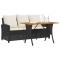 Canapé de jardin 3 places coussins et table noir résine tresséeDétendez-vous et profitez de l'extérieur dans ce confortable canapé de jardin 3 places ! Matériau durable : la résine tressée, également connue sous le nom de poly rotin, est un matériau synthétique solide et nécessitant peu d'entretien qui ressemble au rotin naturel. Elle est légère, facile à nettoyer et couramment utilisée pour les meubles d'extérieur en raison de sa durabilité et de ses propriétés de résistance aux intempéries.Dessus stable et facile à nettoyer : cette table de jardin a un dessus en bois d'acacia robuste, durable et facile à nettoyer avec un chiffon humide.Expérience d'assise confortable : ce mobilier d'extérieur, doté de coussins épais, offre une expérience d'assise confortable.Housse amovible et lavable : ces coussins de siège et oreillers sont dotés de housses amovibles pour un lavage et un entretien faciles.Cadre robuste et stable : le cadre en acier enduit de poudre assure la solidité et la stabilité du meuble de jardin pour une utilisation quotidienne à l'extérieur. Bon à savoir :Pour que vos meubles d'extérieur restent beaux, nous vous recommandons de les protéger avec une housse imperméable.