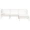 Canapé de jardin 3 places et repose-pied blanc bois pin massifCe canapé de jardin en bois à 3 places avec repose-pieds sera un excellent supplément à votre jardin, terrasse ou patio pour discuter en famille et entre amis ou tout simplement profiter du beau temps. Bois de pin massif : le bois de pin massif est un matériau naturel magnifique. Le bois de pin a un grain droit et les noeuds donnent au matériau son aspect caractéristique et rustique. Fabriqué en bois de pin massif, le canapé d'extérieur est durable et stable.Expérience d'assise confortable : le dossier ajoute un confort d'assise supplémentaire pour les sièges de jardin.Utilisation polyvalente : ce repose-pieds d'extérieur peut non seulement être utilisé pour vous asseoir ou vous détendre, mais il peut également être utilisé comme table basse pour contenir vos boissons, votre nourriture et d'autres décorations.Conception à lattes : la conception à lattes du canapé palette empêche efficacement l'eau de s'accumuler, ce qui garantit que l'assise reste sèche et exempte de tout risque de pourriture.Conception modulaire : le canapé de jardin en bois présente une conception modulaire, ce qui le rend complètement flexible et facile à déplacer pour s'adapter à n'importe quel environnement. Vous pouvez le combiner avec d'autres segments modulaires disponibles dans le menu déroulant pour créer vos propres configurations d'ensemble de salon de jardin personnelles ! Bon à savoir :Pour que vos meubles d'extérieur restent beaux, nous vous recommandons de les protéger avec une housse imperméable. Maximum 110 kg par siège.