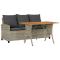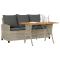 Canapé de jardin 3places coussins et table gris clair polyrotinDétendez-vous et profitez de l'extérieur dans ce confortable canapé de jardin 3 places ! Matériau durable : la résine tressée, également connue sous le nom de poly rotin, est un matériau synthétique solide et nécessitant peu d'entretien qui ressemble au rotin naturel. Elle est légère, facile à nettoyer et couramment utilisée pour les meubles d'extérieur en raison de sa durabilité et de ses propriétés de résistance aux intempéries.Dessus stable et facile à nettoyer : cette table de jardin a un dessus en bois d'acacia robuste, durable et facile à nettoyer avec un chiffon humide.Expérience d'assise confortable : ce mobilier d'extérieur, doté de coussins épais, offre une expérience d'assise confortable.Housse amovible et lavable : ces coussins de siège et oreillers sont dotés de housses amovibles pour un lavage et un entretien faciles.Cadre robuste et stable : le cadre en acier enduit de poudre assure la solidité et la stabilité du meuble de jardin pour une utilisation quotidienne à l'extérieur. Bon à savoir :Pour que vos meubles d'extérieur restent beaux, nous vous recommandons de les protéger avec une housse imperméable.