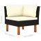 Canapé de jardin à 4 places avec coussins Noir Résine tresséeCe canapé de jardin à 4 places, élégant et confortable, est un choix idéal pour vous détendre et profiter du beau temps, faire une sieste ou discuter avec votre famille ou vos amis. Doté d'un cadre en acier enduit de poudre recouvert de résine tressée, le canapé d'extérieur est résistant aux intempéries et facile à nettoyer. Les pieds en bois d'eucalyptus massif contribuent à sa robustesse et à sa stabilité. Le canapé d'extérieur est livré avec des coussins rembourrés pour un confort suprême. Dotée d'une fermeture éclair, la housse des coussins est amovible et lavable. De plus, ce siège de jardin peut être facilement déplacé pour s'adapter à n'importe quelle configuration grâce à sa construction légère. Remarque : afin de prolonger la durée de vie des meubles d'extérieur, nous vous recommandons de les protéger avec une housse imperméable.