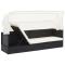 Canapé de jardin avec auvent Noir Résine tressée Notre canapé de jardin en résine tressée est un refuge idéal pour vous détendre près de la piscine, dans le jardin, sur la terrasse, etc. Avec cette élégante chaise longue, vous pouvez montrer votre appréciation de l'ambiance ainsi que votre style de vie branché. Le transat est doté d'un cadre en acier enduit de poudre, recouvert de résine tressée résistante aux intempéries et facile à nettoyer. Grâce au coussin épais et amovible, il est très confortable. Conçu avec un toit rabattable, vous pouvez profiter d'un bain de soleil sans vous soucier de l'éblouissement. Remarque : nous recommandons de couvrir le canapé pendant la pluie, la neige et le gel pour que son meilleur service dure. ,
