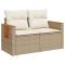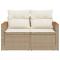 Canapé de jardin avec coussins 2 places beige résine tresséeDétendez-vous et profitez de l'extérieur dans ce confortable canapé de jardin 2 places ! Matériau durable : la résine tressée, également connue sous le nom de poly rotin, est un matériau synthétique solide et nécessitant peu d'entretien qui ressemble au rotin naturel. Il est léger, facile à nettoyer et couramment utilisé pour les meubles d'extérieur en raison de sa durabilité et de ses propriétés de résistance aux intempéries.Table d'appoint pratique : ce mobilier d'extérieur comprend une table d'appoint pliable avec un ressort à gaz sur les accoudoirs, offrant un endroit pratique pour garder vos essentiels à portée de main.Fonction de rangement avec sac résistant à l'eau : chaque siège de jardin dispose d'un espace de rangement sous l'assise, complété par un sac résistant à l'eau pour ranger les coussins, les jouets et d'autres objets. Les sacs intérieurs sont dotés d'un couvercle et peuvent être solidement fixés aux sièges à l'aide des bandes auto-agrippantes pour plus de stabilité.Expérience d'assise confortable : ce mobilier d'extérieur, doté de coussins épais, offre une expérience d'assise confortable.Housse amovible et lavable : ces coussins de siège sont dotés de housses amovibles pour un lavage et un entretien faciles. Bon à savoir :Pour que vos meubles d'extérieur restent beaux, nous vous recommandons de les protéger avec une housse imperméable.