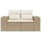 Canapé de jardin avec coussins 2 places beige résine tresséeDétendez-vous et profitez de l'extérieur dans ce confortable canapé de jardin 2 places ! Matériau durable : la résine tressée, également connue sous le nom de poly rotin, est un matériau synthétique solide et nécessitant peu d'entretien qui ressemble au rotin naturel. Il est léger, facile à nettoyer et couramment utilisé pour les meubles d'extérieur en raison de sa durabilité et de ses propriétés de résistance aux intempéries.Expérience d'assise confortable : ce mobilier d'extérieur, doté de coussins épais, offre une expérience d'assise confortable. Les larges accoudoirs offrent également un endroit pratique pour garder votre téléphone portable, vos tasses ou d'autres petits objets à portée de main.Housse amovible et lavable : ces coussins de siège sont dotés de housses amovibles pour un lavage et un entretien faciles.Conception modulaire : cet ensemble de meubles d'extérieur a une conception modulaire, ce qui le rend complètement flexible et facile à déplacer, afin que vous puissiez créer un agencement de meubles d'extérieur personnalisé. Bon à savoir :Pour que vos meubles d'extérieur restent beaux, nous vous recommandons de les protéger avec une housse imperméable.