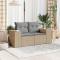 Canapé de jardin avec coussins 2 places beige résine tresséeDétendez-vous et profitez de l'extérieur dans ce confortable canapé de jardin 2 places ! Matériau durable : la résine tressée, également connue sous le nom de poly rotin, est un matériau synthétique solide et nécessitant peu d'entretien qui ressemble au rotin naturel. Il est léger, facile à nettoyer et couramment utilisé pour les meubles d'extérieur en raison de sa durabilité et de ses propriétés de résistance aux intempéries.Fonction de rangement avec sac résistant à l'eau : chaque siège de jardin dispose d'un espace de rangement sous l'assise, complété par un sac résistant à l'eau pour ranger les coussins, les jouets et d'autres objets. Les sacs intérieurs sont dotés d'un couvercle et peuvent être solidement fixés aux sièges à l'aide des bandes auto-agrippantes pour plus de stabilité.Expérience d'assise confortable : ce mobilier d'extérieur, doté de coussins épais, offre une expérience d'assise confortable. Les larges accoudoirs offrent également un endroit pratique pour garder votre téléphone portable, vos tasses ou d'autres petits objets à portée de main.Housse amovible et lavable : ces coussins de siège sont dotés de housses amovibles pour un lavage et un entretien faciles.Conception modulaire : cet ensemble de meubles d'extérieur a une conception modulaire, ce qui le rend complètement flexible et facile à déplacer, afin que vous puissiez créer un agencement de meubles d'extérieur personnalisé. Bon à savoir :Pour que vos meubles d'extérieur restent beaux, nous vous recommandons de les protéger avec une housse imperméable.