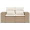 Canapé de jardin avec coussins 2 places beige résine tresséeDétendez-vous et profitez de l'extérieur dans ce confortable canapé de jardin 2 places ! Matériau durable : la résine tressée, également connue sous le nom de poly rotin, est un matériau synthétique solide et nécessitant peu d'entretien qui ressemble au rotin naturel. Il est léger, facile à nettoyer et couramment utilisé pour les meubles d'extérieur en raison de sa durabilité et de ses propriétés de résistance aux intempéries.Fonction de rangement avec sac résistant à l'eau : chaque siège de jardin dispose d'un espace de rangement sous l'assise, complété par un sac résistant à l'eau pour ranger les coussins, les jouets et d'autres objets. Les sacs intérieurs sont dotés d'un couvercle et peuvent être solidement fixés aux sièges à l'aide des bandes auto-agrippantes pour plus de stabilité.Expérience d'assise confortable : ce mobilier d'extérieur, doté de coussins épais, offre une expérience d'assise confortable. Les larges accoudoirs offrent également un endroit pratique pour garder votre téléphone portable, vos tasses ou d'autres petits objets à portée de main.Housse amovible et lavable : ces coussins de siège sont dotés de housses amovibles pour un lavage et un entretien faciles.Conception modulaire : cet ensemble de meubles d'extérieur a une conception modulaire, ce qui le rend complètement flexible et facile à déplacer, afin que vous puissiez créer un agencement de meubles d'extérieur personnalisé. Bon à savoir :Pour que vos meubles d'extérieur restent beaux, nous vous recommandons de les protéger avec une housse imperméable.