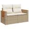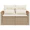 Canapé de jardin avec coussins 2 places beige résine tresséeDétendez-vous et profitez de l'extérieur dans ce confortable canapé de jardin 2 places ! Matériau durable : la résine tressée, également connue sous le nom de poly rotin, est un matériau synthétique solide et nécessitant peu d'entretien qui ressemble au rotin naturel. Il est léger, facile à nettoyer et couramment utilisé pour les meubles d'extérieur en raison de sa durabilité et de ses propriétés de résistance aux intempéries.Table d'appoint pratique : ce mobilier d'extérieur comprend une table d'appoint pliable avec un ressort à gaz sur les accoudoirs, offrant un endroit pratique pour garder vos essentiels à portée de main.Expérience d'assise confortable : ce mobilier d'extérieur, doté de coussins épais, offre une expérience d'assise confortable.Housse amovible et lavable : ces coussins de siège sont dotés de housses amovibles pour un lavage et un entretien faciles.Conception modulaire : cet ensemble de meubles d'extérieur a une conception modulaire, ce qui le rend complètement flexible et facile à déplacer, afin que vous puissiez créer un agencement de meubles d'extérieur personnalisé. Bon à savoir :Pour que vos meubles d'extérieur restent beaux, nous vous recommandons de les protéger avec une housse imperméable.