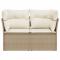 Canapé de jardin avec coussins 2 places beige résine tresséeDétendez-vous et profitez de l'extérieur dans ce confortable canapé de jardin 2 places ! Matériau durable : la résine tressée, également connue sous le nom de poly rotin, est un matériau synthétique solide et nécessitant peu d'entretien qui ressemble au rotin naturel. Il est léger, facile à nettoyer et couramment utilisé pour les meubles d'extérieur en raison de sa durabilité et de ses propriétés de résistance aux intempéries.Fonction de rangement avec sac résistant à l'eau : chaque siège de jardin dispose d'un espace de rangement sous l'assise, complété par un sac résistant à l'eau pour ranger les coussins, les jouets et d'autres objets. Les sacs intérieurs sont dotés d'un couvercle et peuvent être solidement fixés aux sièges à l'aide des bandes auto-agrippantes pour plus de stabilité.Expérience d'assise confortable : ce mobilier d'extérieur, doté de coussins épais, offre une expérience d'assise confortable.Housse amovible et lavable : ces coussins de siège sont dotés de housses amovibles pour un lavage et un entretien faciles.Conception modulaire : cet ensemble de meubles d'extérieur a une conception modulaire, ce qui le rend complètement flexible et facile à déplacer, afin que vous puissiez créer un agencement de meubles d'extérieur personnalisé. Bon à savoir :Pour que vos meubles d'extérieur restent beaux, nous vous recommandons de les protéger avec une housse imperméable.