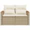 Canapé de jardin avec coussins 2 places beige résine tresséeDétendez-vous et profitez de l'extérieur dans ce confortable canapé de jardin 2 places ! Matériau durable : la résine tressée, également connue sous le nom de poly rotin, est un matériau synthétique solide et nécessitant peu d'entretien qui ressemble au rotin naturel. Il est léger, facile à nettoyer et couramment utilisé pour les meubles d'extérieur en raison de sa durabilité et de ses propriétés de résistance aux intempéries.Fonction de rangement avec sac résistant à l'eau : chaque siège de jardin dispose d'un espace de rangement sous l'assise, complété par un sac résistant à l'eau pour ranger les coussins, les jouets et d'autres objets. Les sacs intérieurs sont dotés d'un couvercle et peuvent être solidement fixés aux sièges à l'aide des bandes auto-agrippantes pour plus de stabilité.Expérience d'assise confortable : ce mobilier d'extérieur, doté de coussins épais, offre une expérience d'assise confortable.Housse amovible et lavable : ces coussins de siège sont dotés de housses amovibles pour un lavage et un entretien faciles.Conception modulaire : cet ensemble de meubles d'extérieur a une conception modulaire, ce qui le rend complètement flexible et facile à déplacer, afin que vous puissiez créer un agencement de meubles d'extérieur personnalisé. Bon à savoir :Pour que vos meubles d'extérieur restent beaux, nous vous recommandons de les protéger avec une housse imperméable.