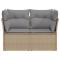 Canapé de jardin avec coussins 2 places beige résine tresséeDétendez-vous et profitez de l'extérieur dans ce confortable canapé de jardin 2 places ! Matériau durable : la résine tressée, également connue sous le nom de poly rotin, est un matériau synthétique solide et nécessitant peu d'entretien qui ressemble au rotin naturel. Il est léger, facile à nettoyer et couramment utilisé pour les meubles d'extérieur en raison de sa durabilité et de ses propriétés de résistance aux intempéries.Fonction de rangement avec sac résistant à l'eau : chaque siège de jardin dispose d'un espace de rangement sous l'assise, complété par un sac résistant à l'eau pour ranger les coussins, les jouets et d'autres objets. Les sacs intérieurs sont dotés d'un couvercle et peuvent être solidement fixés aux sièges à l'aide des bandes auto-agrippantes pour plus de stabilité.Expérience d'assise confortable : ce mobilier d'extérieur, doté de coussins épais, offre une expérience d'assise confortable.Housse amovible et lavable : ces coussins de siège sont dotés de housses amovibles pour un lavage et un entretien faciles.Conception modulaire : cet ensemble de meubles d'extérieur a une conception modulaire, ce qui le rend complètement flexible et facile à déplacer, afin que vous puissiez créer un agencement de meubles d'extérieur personnalisé. Bon à savoir :Pour que vos meubles d'extérieur restent beaux, nous vous recommandons de les protéger avec une housse imperméable.