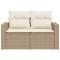 Canapé de jardin avec coussins 2 places beige résine tresséeDétendez-vous et profitez de l'extérieur dans ce confortable canapé de jardin 2 places ! Matériau durable : la résine tressée, également connue sous le nom de poly rotin, est un matériau synthétique solide et nécessitant peu d'entretien qui ressemble au rotin naturel. Il est léger, facile à nettoyer et couramment utilisé pour les meubles d'extérieur en raison de sa durabilité et de ses propriétés de résistance aux intempéries.Fonction de rangement avec sac résistant à l'eau : chaque siège de jardin dispose d'un espace de rangement sous l'assise, complété par un sac résistant à l'eau pour ranger les coussins, les jouets et d'autres objets. Les sacs intérieurs sont dotés d'un couvercle et peuvent être solidement fixés aux sièges à l'aide des bandes auto-agrippantes pour plus de stabilité.Expérience d'assise confortable : ce mobilier d'extérieur, doté de coussins épais, offre une expérience d'assise confortable. Les larges accoudoirs offrent également un endroit pratique pour garder votre téléphone portable, vos tasses ou d'autres petits objets à portée de main.Housse amovible et lavable : ces coussins de siège sont dotés de housses amovibles pour un lavage et un entretien faciles.Conception modulaire : cet ensemble de meubles d'extérieur a une conception modulaire, ce qui le rend complètement flexible et facile à déplacer, afin que vous puissiez créer un agencement de meubles d'extérieur personnalisé. Bon à savoir :Pour que vos meubles d'extérieur restent beaux, nous vous recommandons de les protéger avec une housse imperméable.