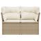 Canapé de jardin avec coussins 2 places beige résine tresséeDétendez-vous et profitez de l'extérieur dans ce confortable canapé de jardin 2 places ! Matériau durable : la résine tressée, également connue sous le nom de poly rotin, est un matériau synthétique solide et nécessitant peu d'entretien qui ressemble au rotin naturel. Il est léger, facile à nettoyer et couramment utilisé pour les meubles d'extérieur en raison de sa durabilité et de ses propriétés de résistance aux intempéries.Expérience d'assise confortable : ce mobilier d'extérieur, doté de coussins épais, offre une expérience d'assise confortable.Housse amovible et lavable : ces coussins de siège sont dotés de housses amovibles pour un lavage et un entretien faciles.Conception modulaire : cet ensemble de meubles d'extérieur a une conception modulaire, ce qui le rend complètement flexible et facile à déplacer, afin que vous puissiez créer un agencement de meubles d'extérieur personnalisé. Bon à savoir :Pour que vos meubles d'extérieur restent beaux, nous vous recommandons de les protéger avec une housse imperméable.
