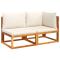 Canapé de jardin avec coussins 2 places bois massif d'acaciaCe canapé de jardin en bois à 2 places sera un excellent supplément à votre jardin, terrasse ou patio pour discuter en famille et entre amis ou tout simplement profiter du beau temps. Cadre robuste et stable : le bois d'acacia massif est connu pour sa solidité et sa durabilité. Ses couleurs variées et ses grains uniques lui confèrent un aspect attrayant. Sa stabilité et sa résistance aux intempéries en font un matériau idéal pour la fabrication de meubles d'intérieur et d'extérieur.Expérience d'assise confortable : ce mobilier d'extérieur, doté de coussins épais, offre une expérience d'assise confortable.Housse amovible et lavable : ces coussins de siège sont dotés de housses amovibles pour un lavage et un entretien faciles.Conception modulaire : ce meuble d'extérieur a une conception modulaire, ce qui le rend complètement flexible et facile à déplacer, afin que vous puissiez créer un agencement de meubles d'extérieur personnalisé. Bon à savoir :Pour que vos meubles d'extérieur restent beaux, nous vous recommandons de les protéger avec une housse imperméable. Maximum 110 kg par siège. Soyez conscient du risque de feux ouverts et d'autres sources de forte chaleur à proximité du produit.