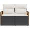 Canapé de jardin avec coussins 2 places noir résine tresséeDétendez-vous et profitez de l'extérieur dans ce confortable canapé de jardin 2 places ! Matériau durable : la résine tressée, également connue sous le nom de poly rotin, est un matériau synthétique solide et nécessitant peu d'entretien qui ressemble au rotin naturel. Il est léger, facile à nettoyer et couramment utilisé pour les meubles d'extérieur en raison de sa durabilité et de ses propriétés de résistance aux intempéries.Fonction de rangement avec sac résistant à l'eau : chaque siège de jardin dispose d'un espace de rangement sous l'assise, complété par un sac résistant à l'eau pour ranger les coussins, les jouets et d'autres objets. Les sacs intérieurs sont dotés d'un couvercle et peuvent être solidement fixés aux sièges à l'aide des bandes auto-agrippantes pour plus de stabilité.Expérience d'assise confortable : ce mobilier d'extérieur, doté de coussins épais, offre une expérience d'assise confortable.Housse amovible et lavable : ces coussins de siège sont dotés de housses amovibles pour un lavage et un entretien faciles.Conception modulaire : cet ensemble de meubles d'extérieur a une conception modulaire, ce qui le rend complètement flexible et facile à déplacer, afin que vous puissiez créer un agencement de meubles d'extérieur personnalisé. Bon à savoir :Pour que vos meubles d'extérieur restent beaux, nous vous recommandons de les protéger avec une housse imperméable.