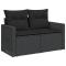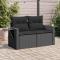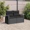 Canapé de jardin avec coussins 2 places noir résine tresséeDétendez-vous et profitez de l'extérieur dans ce confortable canapé de jardin 2 places ! Matériau durable : la résine tressée, également connue sous le nom de poly rotin, est un matériau synthétique solide et nécessitant peu d'entretien qui ressemble au rotin naturel. Il est léger, facile à nettoyer et couramment utilisé pour les meubles d'extérieur en raison de sa durabilité et de ses propriétés de résistance aux intempéries.Table d'appoint pratique : ce mobilier d'extérieur comprend une table d'appoint pliable avec un ressort à gaz sur les accoudoirs, offrant un endroit pratique pour garder vos essentiels à portée de main.Fonction de rangement avec sac résistant à l'eau : chaque siège de jardin dispose d'un espace de rangement sous l'assise, complété par un sac résistant à l'eau pour ranger les coussins, les jouets et d'autres objets. Les sacs intérieurs sont dotés d'un couvercle et peuvent être solidement fixés aux sièges à l'aide des bandes auto-agrippantes pour plus de stabilité.Expérience d'assise confortable : ce mobilier d'extérieur, doté de coussins épais, offre une expérience d'assise confortable.Housse amovible et lavable : ces coussins de siège sont dotés de housses amovibles pour un lavage et un entretien faciles. Bon à savoir :Pour que vos meubles d'extérieur restent beaux, nous vous recommandons de les protéger avec une housse imperméable.