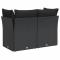 Canapé de jardin avec coussins 2 places noir résine tresséeDétendez-vous et profitez de l'extérieur dans ce confortable canapé de jardin 2 places ! Matériau durable : la résine tressée, également connue sous le nom de poly rotin, est un matériau synthétique solide et nécessitant peu d'entretien qui ressemble au rotin naturel. Il est léger, facile à nettoyer et couramment utilisé pour les meubles d'extérieur en raison de sa durabilité et de ses propriétés de résistance aux intempéries.Expérience d'assise confortable : ce mobilier d'extérieur, doté de coussins épais, offre une expérience d'assise confortable.Housse amovible et lavable : ces coussins de siège sont dotés de housses amovibles pour un lavage et un entretien faciles.Conception modulaire : cet ensemble de meubles d'extérieur a une conception modulaire, ce qui le rend complètement flexible et facile à déplacer, afin que vous puissiez créer un agencement de meubles d'extérieur personnalisé. Bon à savoir :Pour que vos meubles d'extérieur restent beaux, nous vous recommandons de les protéger avec une housse imperméable.