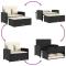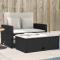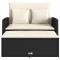 Canapé de jardin avec coussins 2 places noir résine tresséeDétendez-vous et profitez de l'extérieur dans ce confortable canapé de jardin 2 places ! Matériau durable : la résine tressée, également connue sous le nom de poly rotin, est un matériau synthétique solide et nécessitant peu d'entretien qui ressemble au rotin naturel. Il est léger, facile à nettoyer et couramment utilisé pour les meubles d'extérieur en raison de sa durabilité et de ses propriétés de résistance aux intempéries. Fonctionnalité polyvalente : ce meuble d'extérieur peut être utilisé comme banc à 2 places ou comme canapé-lit. Vous pouvez facilement le transformer en lit en inclinant le dossier et en retirant le tabouret qui se trouve sous la banquette. Les panneaux de support situés derrière les dossiers rendent le lit plus stable. Repose-pieds polyvalent : le repose-pieds d'extérieur peut être utilisé pour vous asseoir ou vous détendre, et peut également être utilisé comme table basse pour contenir vos boissons, votre nourriture et d'autres décorations. De plus, le repose-pieds est doté d'une fonction de rangement pour les coussins et les oreillers et peut être soigneusement rangé sous le canapé pour économiser de l'espace. Expérience d'assise confortable : ce mobilier d'extérieur, doté de coussins épais, offre une expérience d'assise confortable. Housse amovible et lavable : ces coussins de siège sont dotés de housses amovibles pour un lavage et un entretien faciles. Bon à savoir :Pour que vos meubles d'extérieur restent beaux, nous vous recommandons de les protéger avec une housse imperméable. Maximum 110 kg par siège. Soyez conscient du risque de feux ouverts et d'autres sources de forte chaleur à proximité du produit.