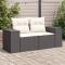 Canapé de jardin avec coussins 2 places noir résine tresséeDétendez-vous et profitez de l'extérieur dans ce confortable canapé de jardin 2 places ! Matériau durable : la résine tressée, également connue sous le nom de poly rotin, est un matériau synthétique solide et nécessitant peu d'entretien qui ressemble au rotin naturel. Il est léger, facile à nettoyer et couramment utilisé pour les meubles d'extérieur en raison de sa durabilité et de ses propriétés de résistance aux intempéries.Fonction de rangement avec sac résistant à l'eau : chaque siège de jardin dispose d'un espace de rangement sous l'assise, complété par un sac résistant à l'eau pour ranger les coussins, les jouets et d'autres objets. Les sacs intérieurs sont dotés d'un couvercle et peuvent être solidement fixés aux sièges à l'aide des bandes auto-agrippantes pour plus de stabilité.Expérience d'assise confortable : ce mobilier d'extérieur, doté de coussins épais, offre une expérience d'assise confortable. Les larges accoudoirs offrent également un endroit pratique pour garder votre téléphone portable, vos tasses ou d'autres petits objets à portée de main.Housse amovible et lavable : ces coussins de siège sont dotés de housses amovibles pour un lavage et un entretien faciles.Conception modulaire : cet ensemble de meubles d'extérieur a une conception modulaire, ce qui le rend complètement flexible et facile à déplacer, afin que vous puissiez créer un agencement de meubles d'extérieur personnalisé. Bon à savoir :Pour que vos meubles d'extérieur restent beaux, nous vous recommandons de les protéger avec une housse imperméable.