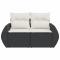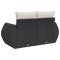 Canapé de jardin avec coussins 2 places noir résine tresséeDétendez-vous et profitez de l'extérieur dans ce confortable canapé de jardin 2 places ! Matériau durable : la résine tressée, également connue sous le nom de poly rotin, est un matériau synthétique solide et nécessitant peu d'entretien qui ressemble au rotin naturel. Il est léger, facile à nettoyer et couramment utilisé pour les meubles d'extérieur en raison de sa durabilité et de ses propriétés de résistance aux intempéries.Expérience d'assise confortable : ce mobilier d'extérieur, doté de coussins épais, offre une expérience d'assise confortable.Housse amovible et lavable : ces coussins de siège sont dotés de housses amovibles pour un lavage et un entretien faciles.Conception modulaire : cet ensemble de meubles d'extérieur a une conception modulaire, ce qui le rend complètement flexible et facile à déplacer, afin que vous puissiez créer un agencement de meubles d'extérieur personnalisé. Bon à savoir :Pour que vos meubles d'extérieur restent beaux, nous vous recommandons de les protéger avec une housse imperméable.