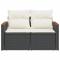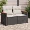 Canapé de jardin avec coussins 2 places noir résine tresséeDétendez-vous et profitez de l'extérieur dans ce confortable canapé de jardin 2 places ! Matériau durable : la résine tressée, également connue sous le nom de poly rotin, est un matériau synthétique solide et nécessitant peu d'entretien qui ressemble au rotin naturel. Il est léger, facile à nettoyer et couramment utilisé pour les meubles d'extérieur en raison de sa durabilité et de ses propriétés de résistance aux intempéries.Fonction de rangement avec sac résistant à l'eau : chaque siège de jardin dispose d'un espace de rangement sous l'assise, complété par un sac résistant à l'eau pour ranger les coussins, les jouets et d'autres objets. Les sacs intérieurs sont dotés d'un couvercle et peuvent être solidement fixés aux sièges à l'aide des bandes auto-agrippantes pour plus de stabilité.Expérience d'assise confortable : ce mobilier d'extérieur, doté de coussins épais, offre une expérience d'assise confortable.Housse amovible et lavable : ces coussins de siège sont dotés de housses amovibles pour un lavage et un entretien faciles.Conception modulaire : cet ensemble de meubles d'extérieur a une conception modulaire, ce qui le rend complètement flexible et facile à déplacer, afin que vous puissiez créer un agencement de meubles d'extérieur personnalisé. Bon à savoir :Pour que vos meubles d'extérieur restent beaux, nous vous recommandons de les protéger avec une housse imperméable.